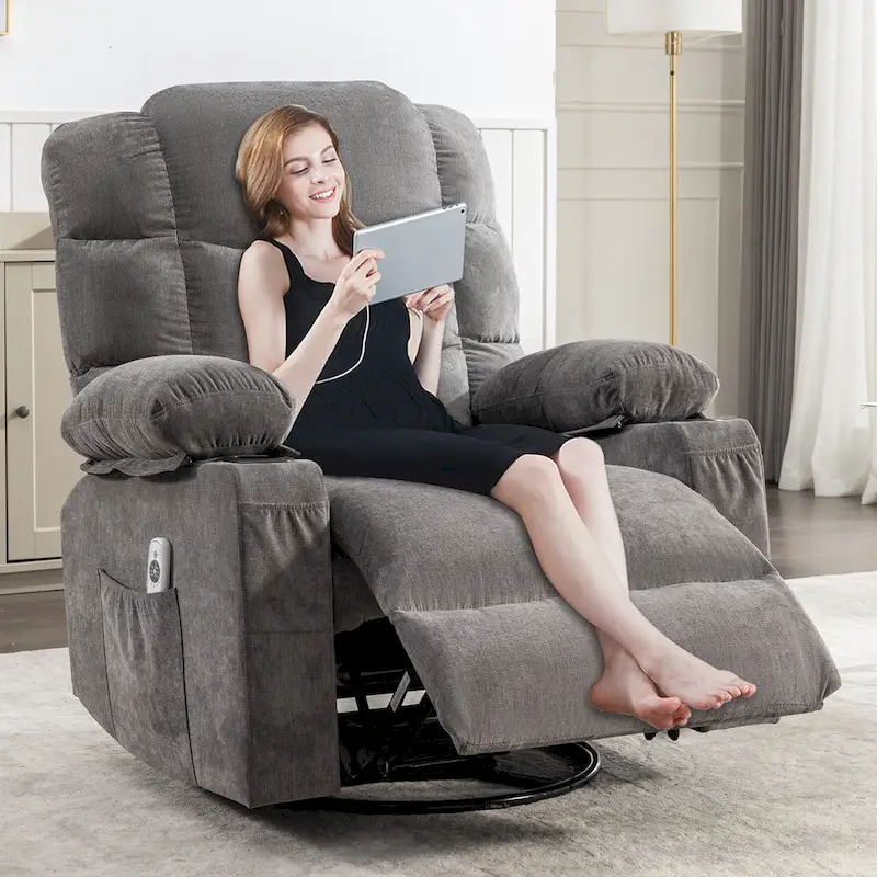 Massage Rocker Recliner Chair Rocking Chairs for Adults Oversized with 2 Cup Holders, USB Charge Port Soft Features a Manual Mas