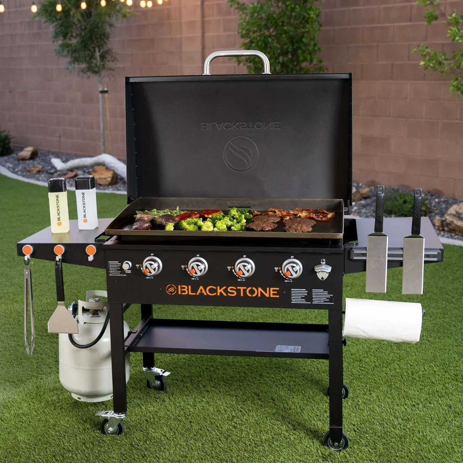Portable Outdoor Table and Storage Cabinet with Hooks for Grill Accessories-Stainless Steel Top for Patio Kitchen Island or Bar Cart