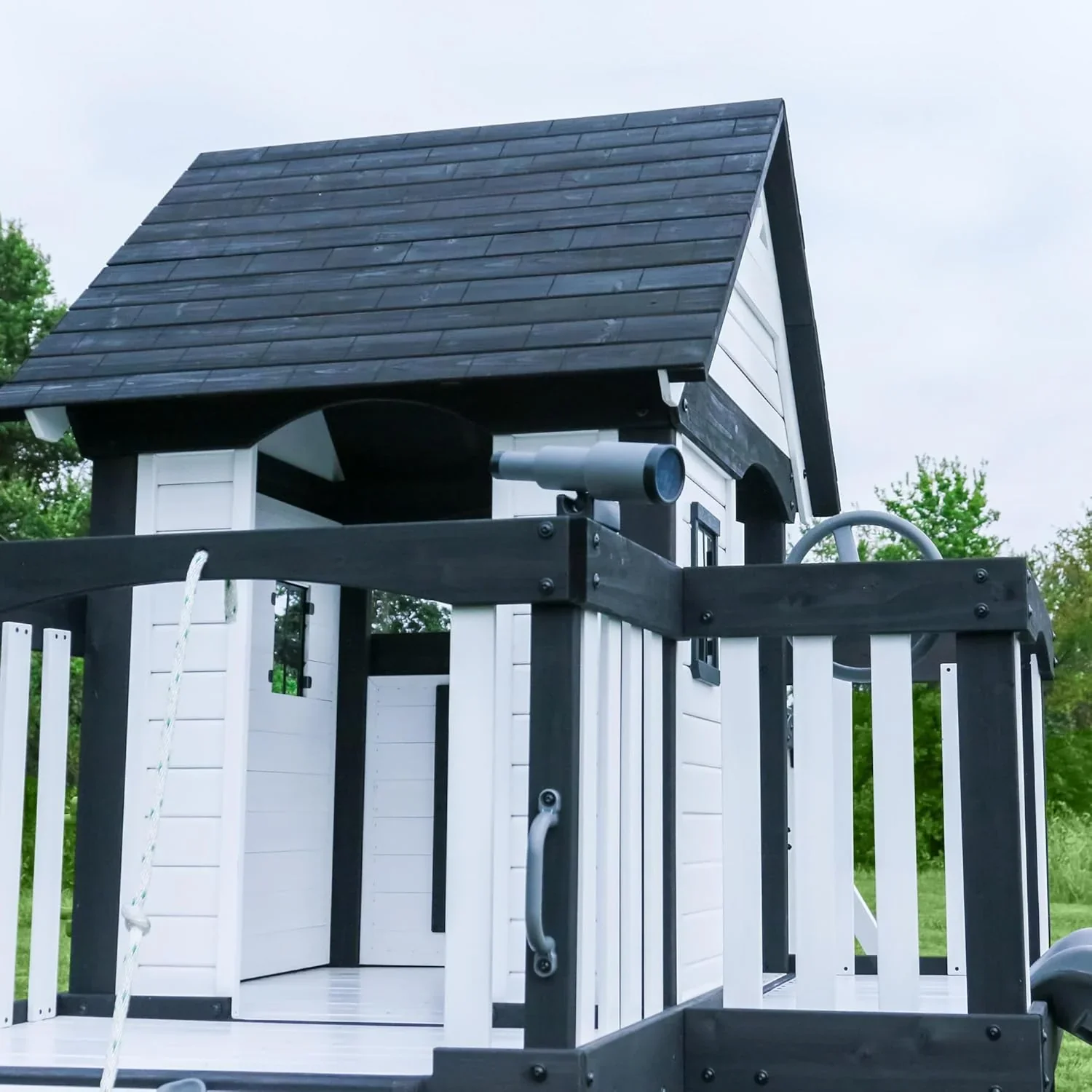 Backyard Discovery Canyon Creek Cedar Wood Swing Set with Wave Slide, Clubhouse, Play Kitchen, Picnic Area, Belt Swings, Web Swing, Rock Wall, Balconies, Playhouse, Step Ladder, Outdoor Playset
