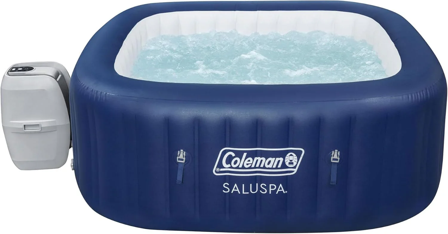 4 to 6 Person Inflatable Hot Tub Square Portable Outdoor Spa with 114 Soothing AirJets and Insulated Cover.